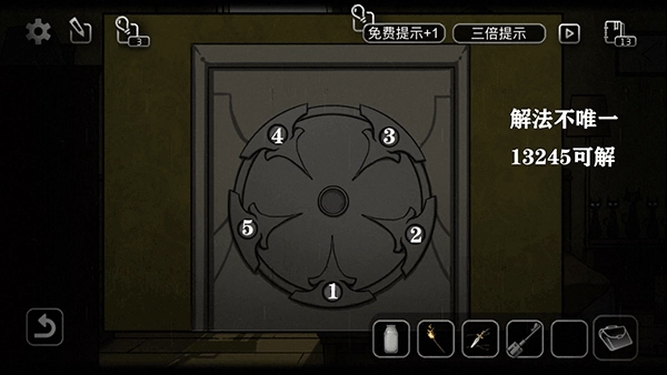 第五步:观察新出现的旋涡图案,依据其由小到大的旋转方向,依次按动门上机关:左→右→左→左→右,即可开启“密室”空间。