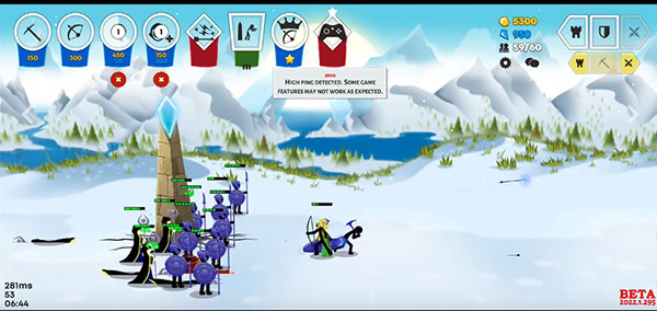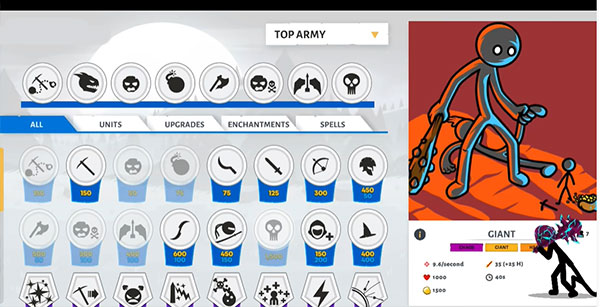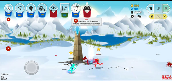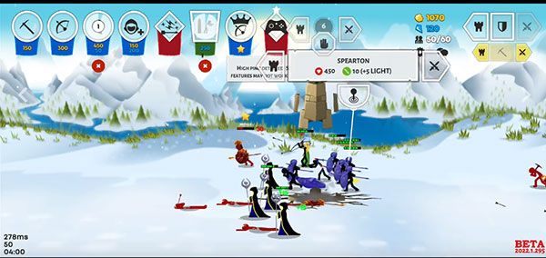 开局先派出矛兵,径直冲向敌方基地,以此吸引巨人的仇恨。毕竟巨人的伤害不算高,普通攻击也就三十多点,要是用盾牌格挡的话,掉血量也就八九点。之后就持续不断地出兵,一直到达到出兵上限,最后再发起总攻。