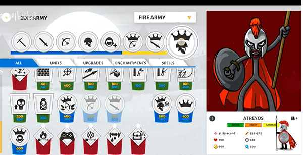 第四关:矛士关卡,开局先出4个矿工搞经济,之后全力培养剑士(因为矛士克制弓箭)
