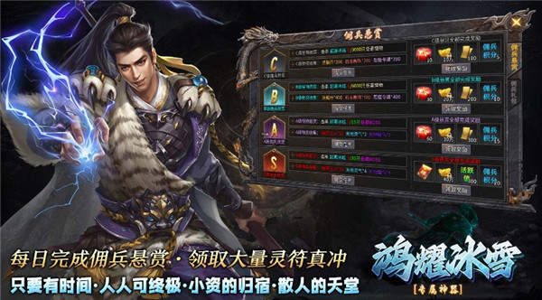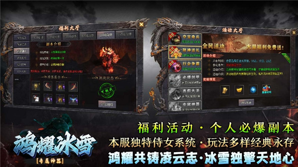 3、进图设有低门槛消费、掉落爆率全凭运气、玩法支持自由博弈、核心理念追求极致、主打小人物逆袭爽感、专注服务散人玩家、开启全新冰雪盛宴!