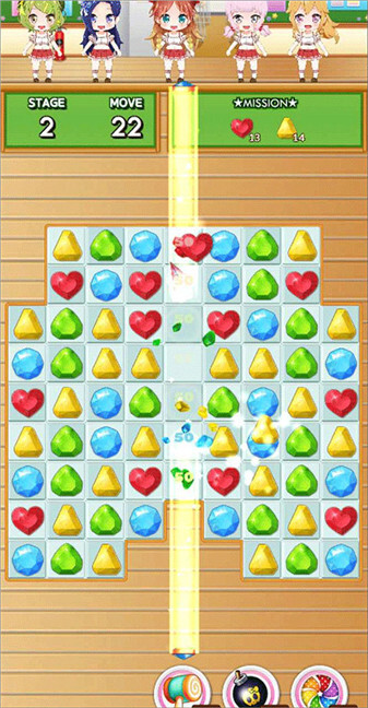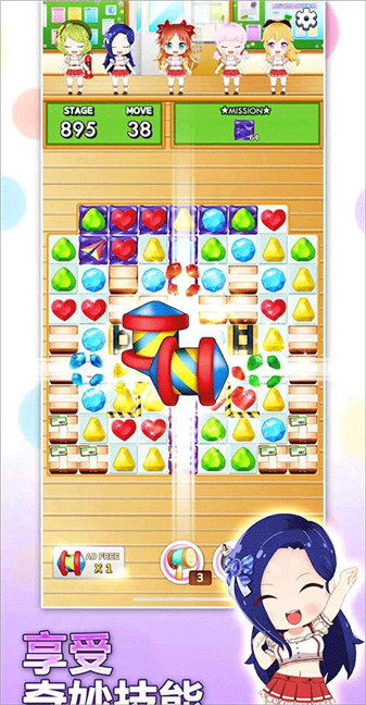 2、游戏界面的上方会显示“move”(移动步数)和“mission”(过关目标),玩家需要在限定的步数内达成目标。