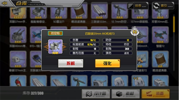 舰船的装备是培育过程中的重点内容之一,当前装备主要划分为舰炮、鱼雷、防空炮、舰载机与设备这五个类别。