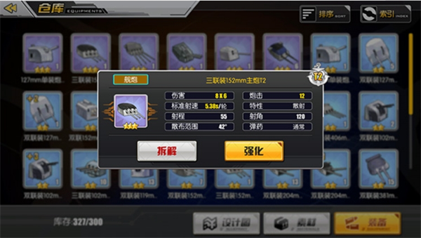 在装备属性方面,舰炮存在锁定、散射与跨射这三种特性上的区别。关于伤害的示例:4x3 里,数字 4 代表基础伤害,而数字 3 则表示炮弹的数量。