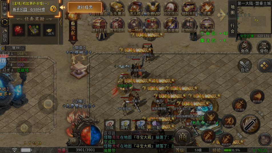 3、多去参与BOSS挑战和地图探索,优先把闲置装备回收来获取元宝,多余的材料可以通过交易行卖掉,积累这些资源用来强化战力。