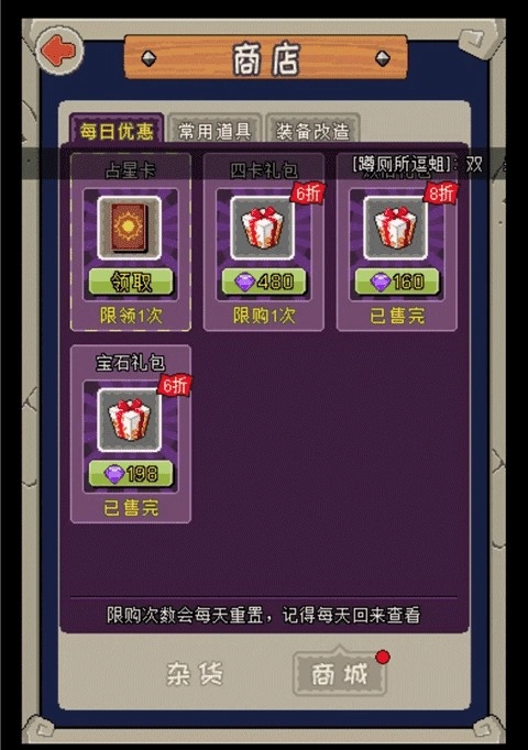关于商店的每日礼包,我的看法是只买宝石礼包就行,其他礼包可以根据自己的兴趣来决定,毕竟再怎么节省也不能在宝石上省钱。