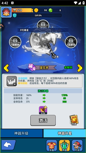 主动技能:施展【爆锤】,对范围内敌人造成相当于自身攻击力120%的范围伤害,同时附加0.8秒的【眩晕】效果