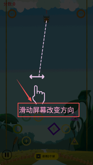2、接着,按照“滑动屏幕改变方向”的提示操作,调整好角度后松开手指射出第一波球,通过撞击目标来得分。