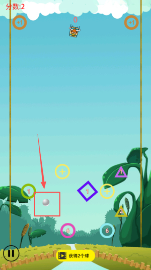 3、之后,每一轮结束后会奖励“获得2个球”,要及时点击领取并继续滑动调整,让球的数量持续增加。