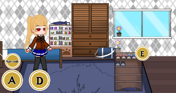 1、进入游戏后,玩家能够借助左下角的AD按键操控角色左右移动,E键为互动功能键。