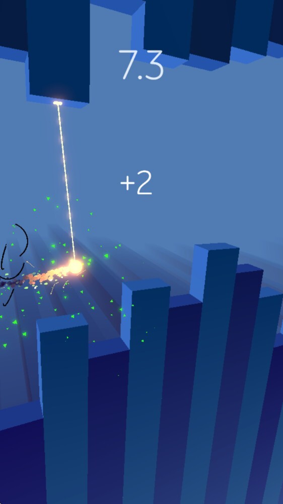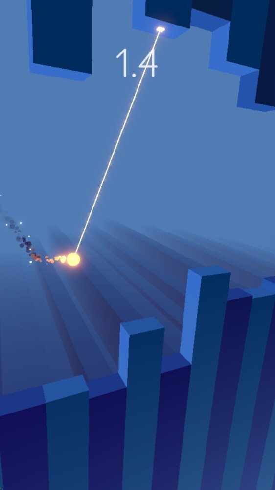 进入Fire Rides游戏后,你只要按住屏幕就能发射火线缠住顶部,接着借助惯性向前摆动。