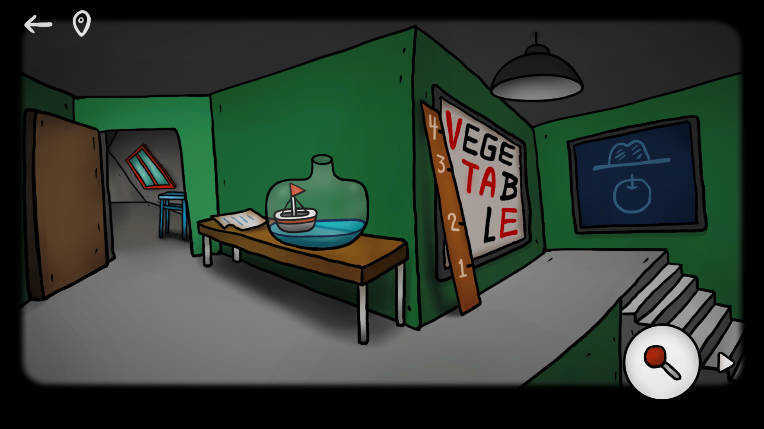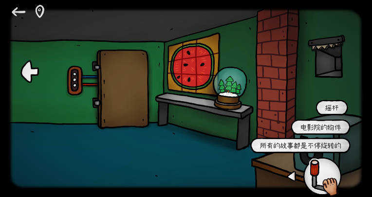 2、进入初始房间后,点击左下角桌子底下,拾取藏在阴影里的操作杆