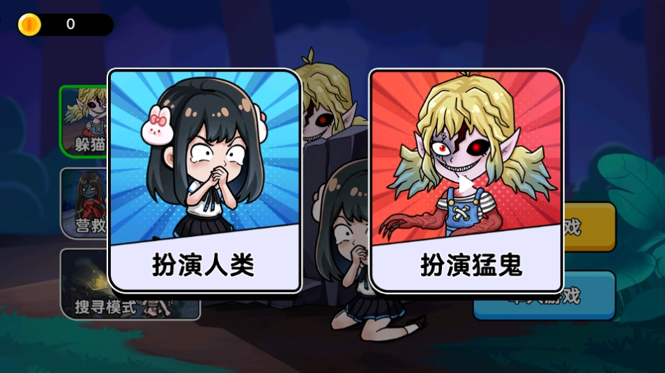 1、在此处选择模式,接着挑选你希望扮演的角色,可选人类或是猛鬼;
