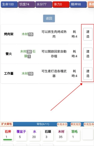 6、玩家若拥有充足的资源,还能够打造烤肉架、篝火之类的设施,从而让自己的家园变得更加完善。