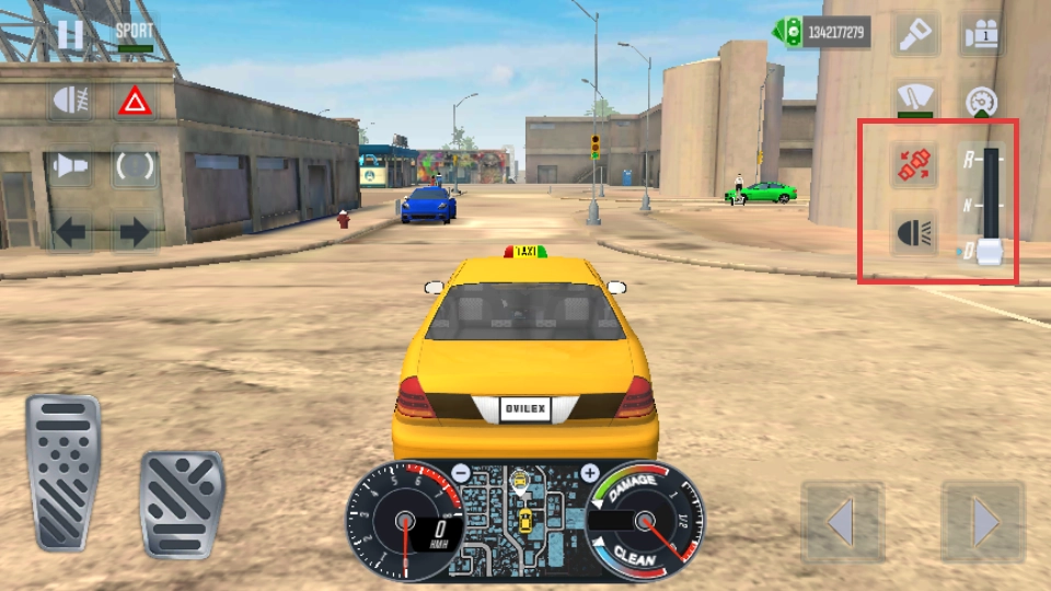 3、留意右侧的车辆状态显示与档位操控区域,规范操作以确保车辆在道路上平稳行驶。