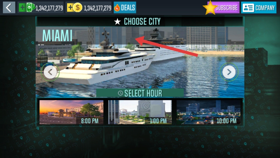 2、选择【MIAMI】城市,接着挑选合适的时间,随后开启在该城市的驾驶之旅。