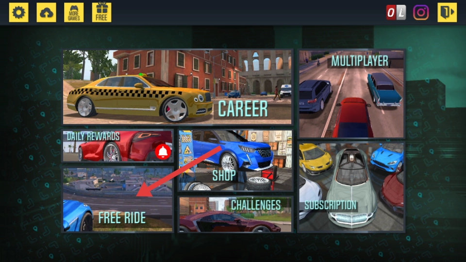 1、点击【FREE-RIDE】选项,即可进入自由驾驶模式。