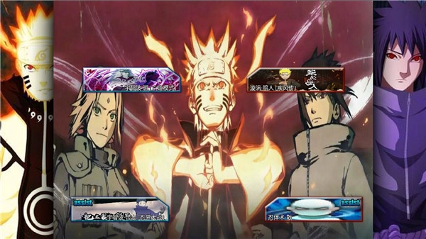 1、进入游戏后,首先看到的是火影里的一些经典名场面,点击任意区域就能进入游戏。