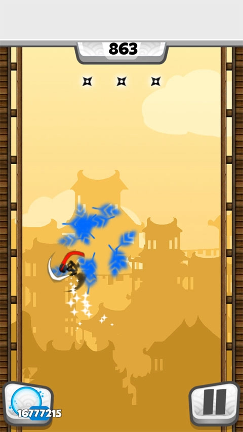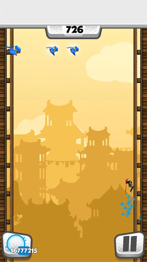 跳跃忍者是一款很经典有趣的动作跑酷游戏。在游戏中,玩家将扮演一个敏捷的忍者,在高层建筑和陡峭的墙壁上来回跳跃,不断的向上攀爬。在向上的过程中,会有飞镖、飞鸟、敌对的忍者、狡猾的鼬鼠等障碍,一旦在没有护盾的情况下被碰到就会失败,所以你要尽可能的躲避它们。游戏的操作很简单,就是用手触摸屏幕并滑动它,向左滑动就会向左移动,反之亦然。
