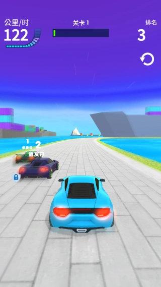 2、玩家操控赛车在充满挑战的赛道上与AI或其他玩家竞速。核心目标是第一个冲过终点。