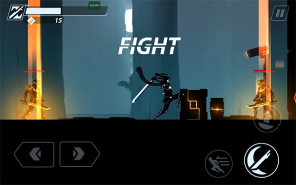 1、首先通过点击左下角的按键进行移动,右侧按键则用于攻击,瞬移和跳跃;