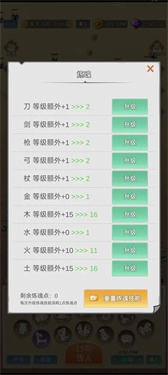 开局时五个基础兵器各点一级即可,属性方面优先考虑土系,其次是木系、火系,水系和金系前期暂时不用投入资源。