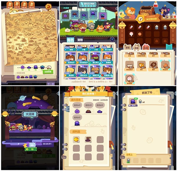 点击路牌即可开启冒险之旅,冒险家们可以布置角色与宠物,携带食物、抓捕道具和玩具展开探索,以此获取金币及其他各类资源。随着探索区域的逐步解锁,挑战小怪的环节也会随之出现,这时就需要冒险家们带领队伍奋勇战斗啦!背包格的数量由角色及其阶数来决定,1阶角色能提供1个背包格,2阶角色可提供2个背包格。在最理想的情况下,5个3阶角色总共能提供15个背包格。背包格不仅可以用来携带食物,还能放置捕捉道具以及通过事件奖励获得的探索辅助道具。敌人被击败后肯定会掉落金币,素材则是随机掉落的,不过稀有度越高的敌人,其素材掉落率也就越高。游戏里共有水、火、风、光、暗这5种元素。它们的克制关系为水克制火、火克制风、风克制水,当这三种元素形成克制关系时,造成的伤害会有所提升,受到的伤害则会降低。光元素和暗元素相互攻击时,造成的伤害会增加,而受到同元素攻击时,所受伤害会减少。