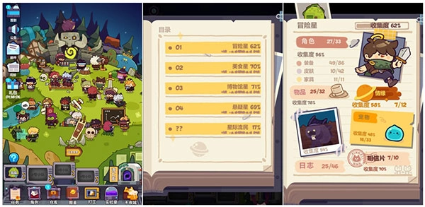 游戏的核心目标是完善星际图鉴系统,玩家可通过主界面底部的导航按钮进入图鉴页面,查看各星球的收集进度。图鉴收集度由角色、物品、宠物、事件、明信片五个维度构成,收集爱好者可通过探索各星球区域来提升进度。每个区域都有专属的探索事件,每次探索最多触发一个新事件,满足条件即可解锁并在图鉴中查看,部分事件还会产出特殊道具。例如,若想解锁某小镇相关事件,需派遣特定角色组合在初始区域探索达到一定时长。