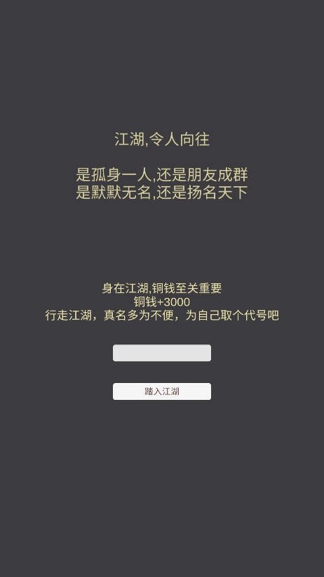 这是一款以文字构筑的武侠世界,在这个快意恩仇的江湖里,你可以亲手谱写独属于自己的江湖故事。你可以选择低调潜行,做个无人知晓的隐世高人;也可以选择高调行事,闯出赫赫威名,最终登顶武学之巅,成为受人敬仰的一代宗师。你的每一个选择,都将决定你在这个江湖中的走向。