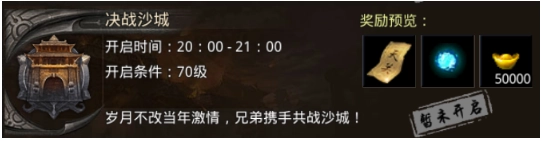 开启时间:服务器开启后的第10天会首次启动沙城争霸活动,从那之后,每周的星期三和星期六都会定期开启该活动。