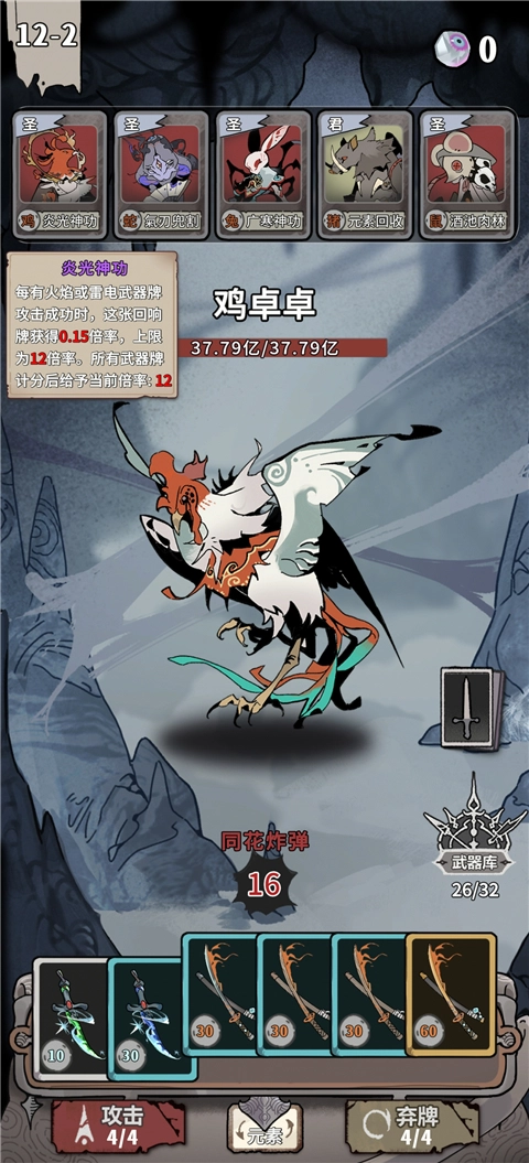 当卡牌组合尚未完整时,想要通关就只能依靠三张倍率为十二的卡牌,但偶尔会遇到难以突破的瓶颈。
