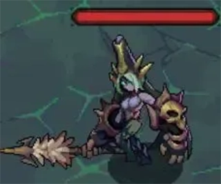 这是一个能掌控寒冰与岩石力量的强大生物,它可以借助这两种力量在战场上为英雄设置重重阻碍,或者对英雄施展一套多段连击。
