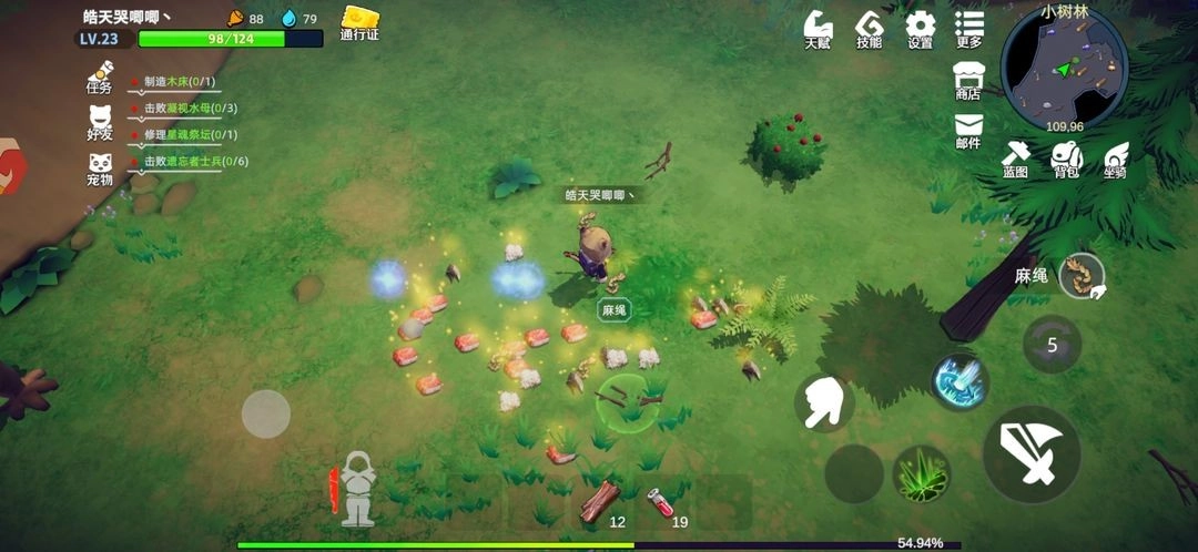难度会随着进程逐步增加,前期主要在这三张地图发育,小树林是个不错的地方,它是木头的主要来源地,不仅安全,能获得的经验也挺多。
