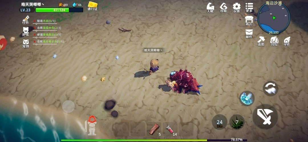 前期要特别留意!那片临海沙岸区域分布着大量远程攻击的怪物,要是还没凑齐像样的装备,最好别轻易前往——不少刚接触的玩家都在这儿栽过跟头。我们去那里的话,悄悄收集些水泡树苗、摸几个宝箱就赶紧离开比较稳妥,毕竟这片区域的资源本身也不算丰富。