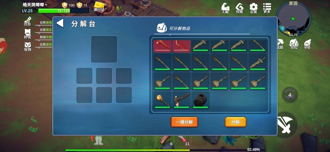 材料一凑齐我就立刻动手制作。等做出来后就不愁没有了,翻垃圾堆能找到不少生锈的武器,把它们分解开就能得到那些金属,损坏的装备同样可以用来分解获取材料。