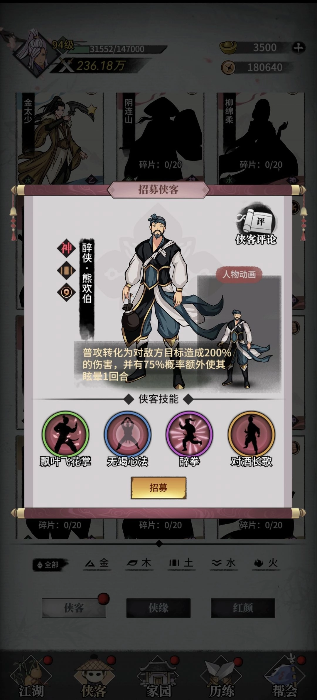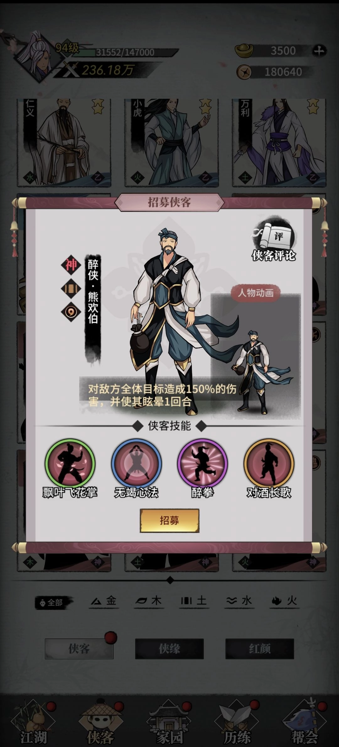 阵容中侠客详细介绍: