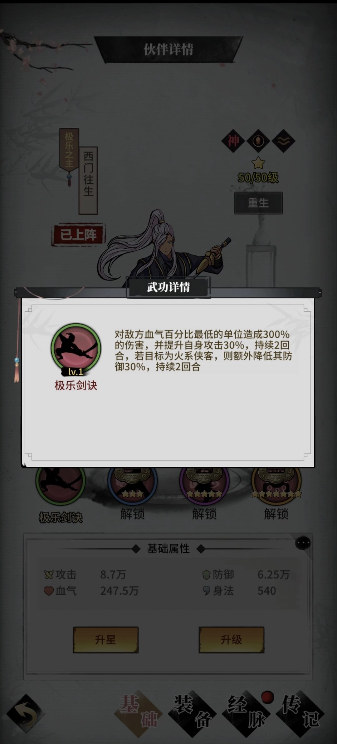 提升侠客实力的关键方式之一是武学升星,当主角或侠客达到3星、6星、10星时,会分别解锁全新的技能。