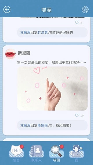 浏览社交动态、表达认可并分享生活点滴,通过专属通讯工具和不同身份的用户进行交流互动。