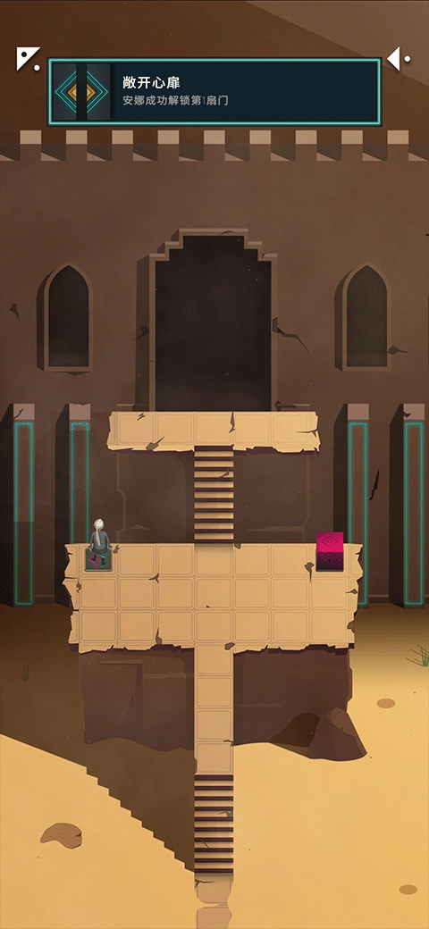 接着使用世界切换按钮,让匠人移动到左下角,随后点击大门进入,第二关便结束了。