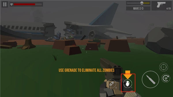 7、点击手雷,它会自动扔到有僵尸的地方并爆炸;