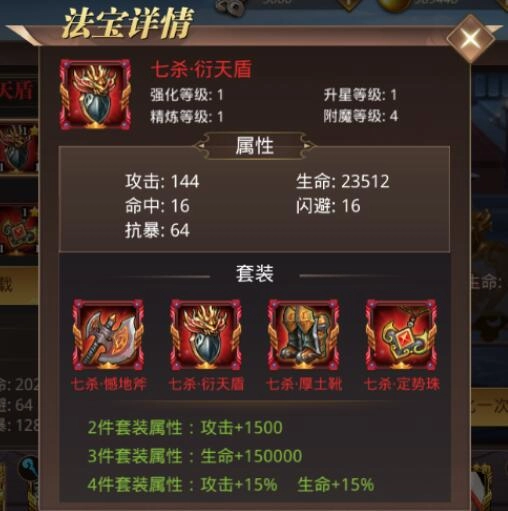 法宝能够进行强化、精炼、附魔以及升星等操作,要是属于法宝套装的话,还会有额外的加成效果。