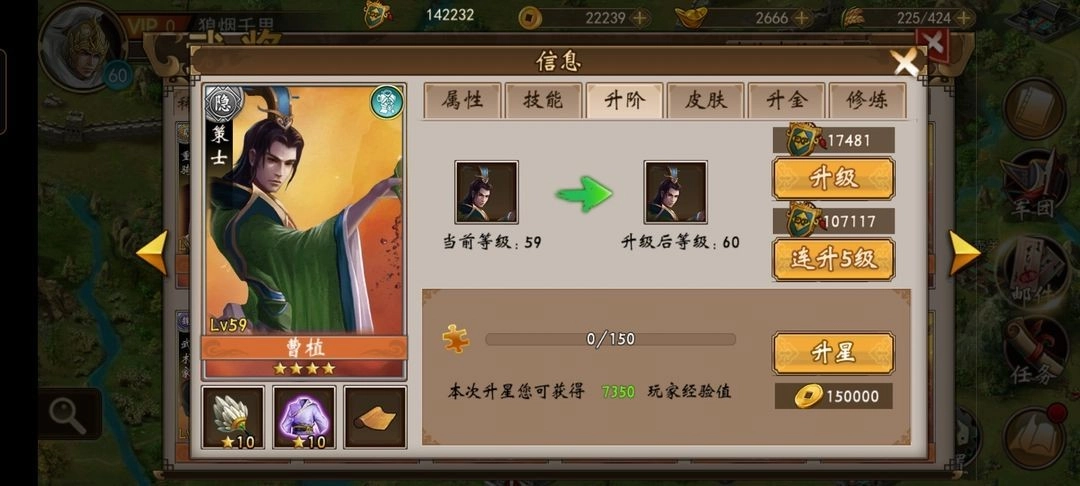 在这款游戏的武将养成体系里,有一项核心设定叫“五维成长”,它直接关联着角色的武力、智力、统帅、敏捷与运气这五项关键属性的成长幅度。通常情况下,这个成长幅度是固定的,但通过给武将升星或者佩戴特定的稀有装备,就能让这个数值得到提升。这里的星级从高到低依次是金色、五星、四星、三星、二星、一星。