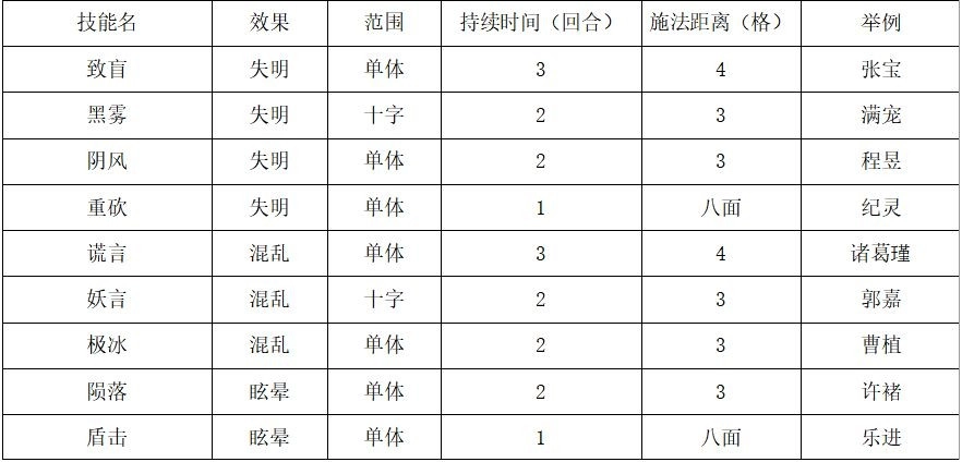 失明:无法攻击、释放技能,可以移动、使用道具。