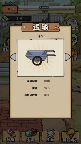 想体验搬砖日常与农民工的艰辛,不妨试试我的打工日记!这是一款卡通风格的经营休闲游戏,你能在游戏里升级力量、体力与耐力,还可装备手套、安全帽等工具,和其他玩家一同参与搬砖挑战。率先达到1000就能赢得比赛,获取丰厚奖励。这款游戏不仅充满挑战,还能通过各类副本开展日常练习,以此提升搬砖速度,感受隐藏其中的故事吧!