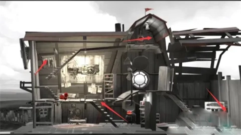 进入指定的房屋,找到红色的按钮,借助跳跃的方式触碰这个按钮,就能把灯打开。