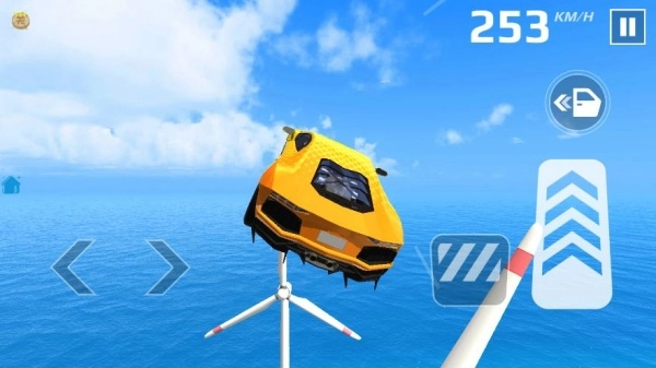 在高空特技场景里,要留意速度表,通过方向键把控车辆平衡,碰到风力发电机这类障碍物时,提前调整行驶方向,依靠加速键维持高速状态通过。