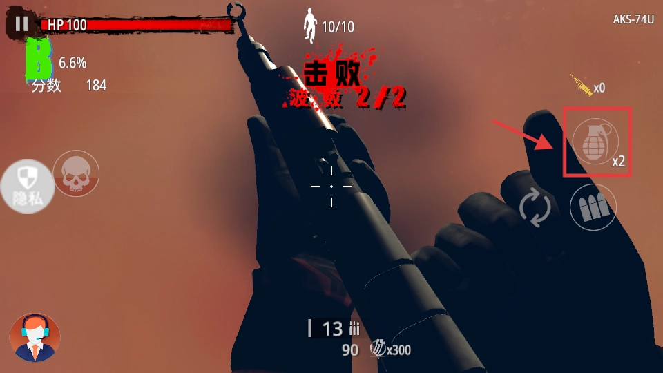 波数达到【2/2】阶段时,点击手雷(x2)来清理剩余敌人,完成挑战后分数将提升至【184】。