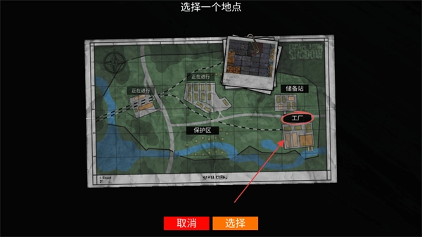 选择地图地点如工厂,点击选择进入场景。