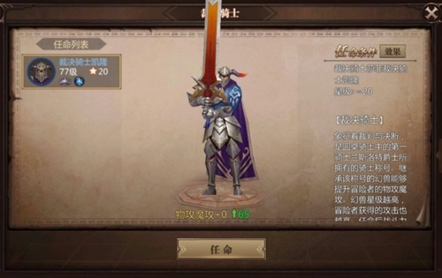 在圆桌骑士界面里,我们能对当前符合条件的幻兽进行任命操作。完成任命后,会相应提升所持有的buff效果,并且任命之后支持替换和解除任命。