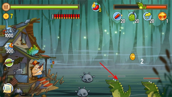 战斗中积累经验,攻击对面行进的鳄鱼等敌人,通过战斗获取经验,积累到一定程度就能升级。