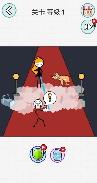 进入游戏后,你会看到火柴人的目标是帮助那位女士,只要点击并画出线条,就能顺利完成任务。